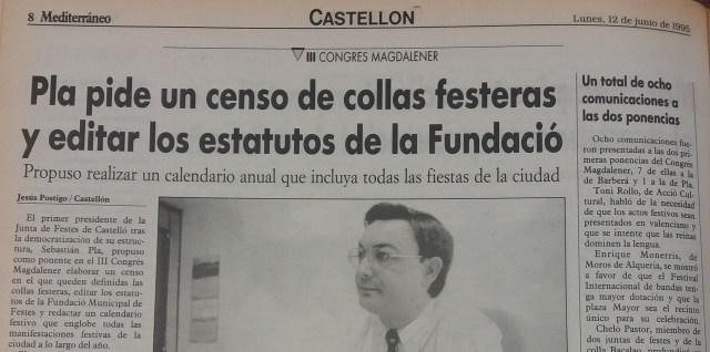 Cumpliéndose los plazos establecidos, el 11 de junio se reunía la asamblea, a la que se presentaba el proyecto estatutario. Una semana después, analizadas y aceptadas las enmiendas por la mesa, se aprobaban los estatutos de la nueva estructura de la fiesta en Castellón, la Fundación Municipal de Fiestas, «una organización progresista y más acorde con la realidad plural y participativa de la sociedad castellonense» según explica Francisco Pascual en su imprescindible Ayer y hoy en Castellón. Era el 18 de junio de 1988 y se producía «un cambio absolutamente necesario de cara al futuro» dado que, recordaba el periodista, «desde mucho tiempo atrás se había manifestado repetidamente la necesidad de un cambio en la estructura de las fiestas para que estas fueran más populares y participativas. El cambio que se había operado en la sociedad con la recuperación de las libertades exigía también la consiguiente evolución en un aspecto tan importante para la convivencia ciudadana como el de las fiestas«. Nacía así la Junta de Fiestas como ente autónomo y con representatividad y legitimidad para la organización de las fiestas de la ciudad. Su primer presidente, elegido el 3 de junio, sería Sebastián Pla Colomina, primer presidente de la Junta ajeno a la corporación municipal.