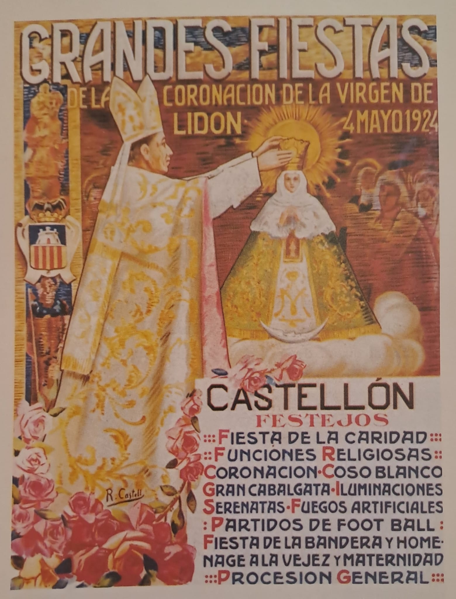 A comienzos de abril de 1924, la ciudad bulle en preparativos de las grandes fiestas de la Coronación canónica de la Mare de Déu del Lledó. Heraldo de Castellón anuncia que en el pórtico del Ayuntamiento de la capital se ha colocado «un magnífico cartel anunciador» de los festejos, «un verdadero acierto pictórico». El 11 de enero se había anunciado el fallo del concurso de carteles, siendo seleccionado el que llevaba por lema Corazón, firmado por Rafael Castell Soliva, hijo menor del pintor Vicent Castell Doménech, quien según señalaría Josep Miquel Francés en su Historia de la Basílica de Lledó «fue realmente» el autor de la obra.