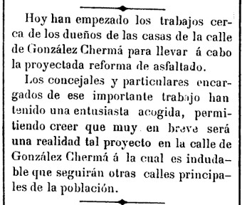 El asfaltado de las calles en España tiene su pistoletazo de salida en 1898, cuando la capital, Madrid, inicia los trabajos en cinco de sus calles principales. Seis años después, corresponde a la calle González Chermá, hoy Enmedio, el honor de ser la primera de la ciudad en estrenar este tipo de pavimentado. Heraldo de Castellón celebra de este modo el inicio de los trabajos en mayo de 1904, señalando como «indudable» que próximamente el asfaltado llegará a «otras calles principales de la población».