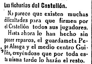 Ayer como hoy, el mes de julio es época de fichajes por parte de los clubes de fútbol, que también negocian las correspondientes renovaciones de los jugadores de sus plantillas. En el verano de 1929, Heraldo de Castellón se hace eco de este modo de lo que llama «ficherías» del CD Castellón, entre ellas las de dos jugadores míticos de los primeros años del equipo albinegro: por un lado, el portero Pepe Alanga y por el otro, el medio centro Francisco Guillén.