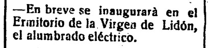 Solo cinco meses después de las grandes celebraciones de la Coronación de la Mare de Déu del Lledó en mayo de 1924, Heraldo de Castellón informaba de esta forma tan breve sobre un hecho importante para el ermitorio de la Patrona principal de la ciudad: la inminente inauguración del alumbrado eléctrico en el templo:
