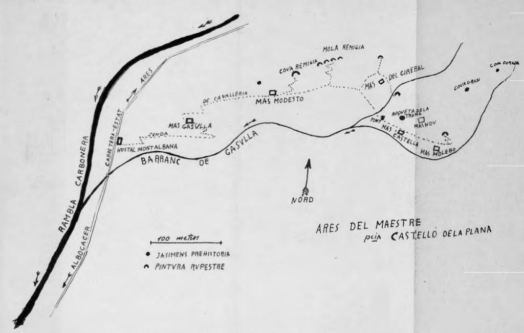 En 1935, Porcar, Obermaier y el historiador francés Henri Breuil publicarán el artículo Excavaciones en la Cueva Remigia (Castellón), en el número 136 de la Memoria de la Junta Superior de Excavaciones (ver desde la página 310). Y antes, en 1934, tal como se anunciaba en la primera noticia aludida, el Boletín de la Sociedad Castellonense de Cultura recoge un artículo de Porcar (ver desde la página 343) en el que, entre otras, se incluyen ilustraciones como esta del Barranco de la Gasulla de Ares…
