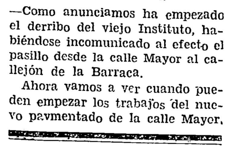 No obstante, medio año más tarde, en abril de 1935, aún no se habrá completado el derribo, con las lógicas molestias para el vecindario.