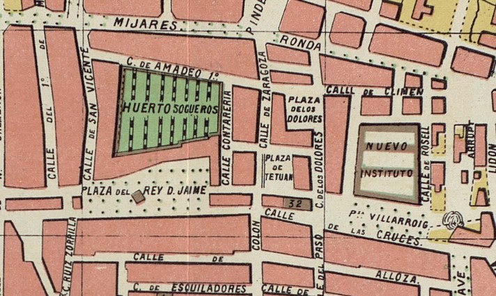 La ubicación de la plaza puede verse en este plano del propio año 1905, recogido en el Repositori de la Universitat Jaume I: