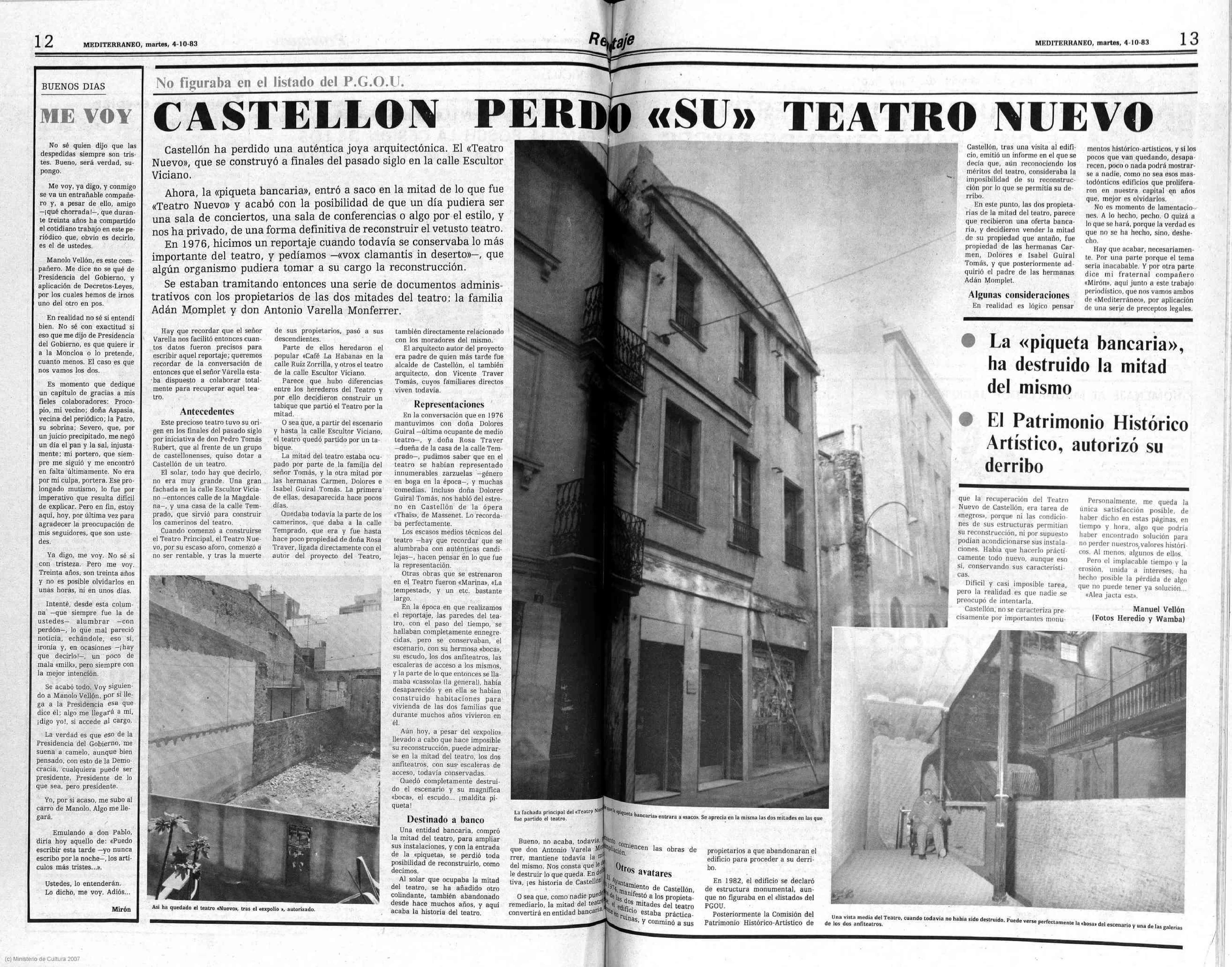 Este espacio escénico está impulsado por Pedro Tomás Rubert «al frente de un grupo de castellonenses», como recordará desde Mediterráneo Manuel Vellón muchos años después, en 1983, al informar sobre el derribo del inmueble. Inaugurado en el mismo año de 1885, este teatro perderá público con la apertura del Principal en 1894. En este repaso histórico, en el que se narran las vicisitudes del edificio, afectado por los repartos de las herencias familiares, se explica asimismo que el arquitecto autor del proyecto inicial había sido el padre del también arquitecto Vicente Traver Tomás, quien sería asimismo alcalde de Castellón: