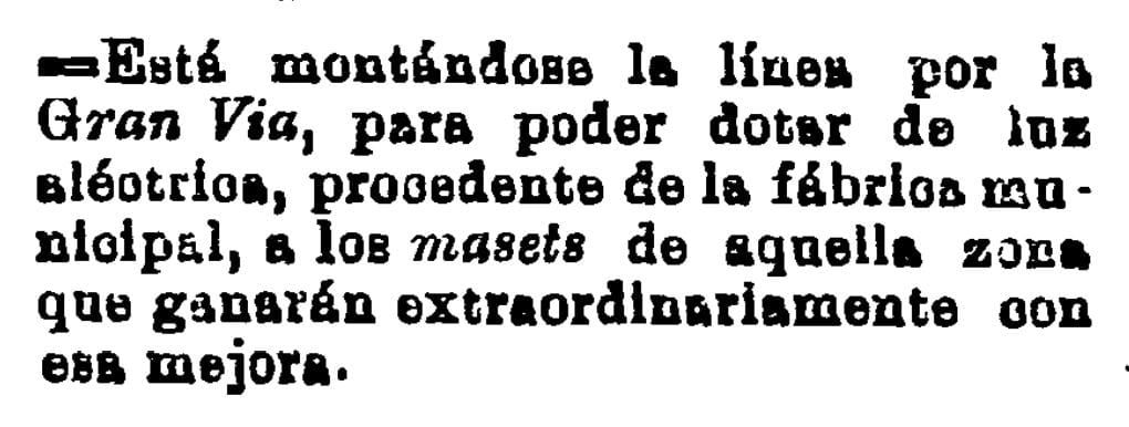 El área situada entre las actuales avenida Villarreal y Gran Vía, adquiere a comienzos del siglo XX una creciente importancia, acogiendo sus masets a numerosas familias bien situadas en la sociedad de la época. En agosto de 1915, Heraldo de Castellón se hace eco de una importante mejora: el montaje de la línea «para poder dotar de luz eléctrica, procedente de la fábrica municipal» a su vecindario de la zona aledaña a las vías del ferrocarril.