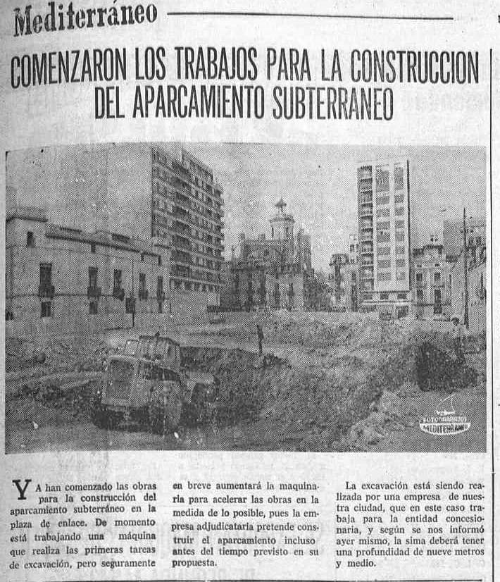 Tres años más tarde, en noviembre de 1973, El Periódico Mediterráneo informaba sobre el inicio de los trabajos del parking en lo que se seguía conociendo como «plaza de enlace»: