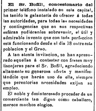 Ha pasado casi medio siglo desde que La Provincia anunciase la instalación del primer teléfono en la capital castellonense, el 28 de febrero de 1886:
