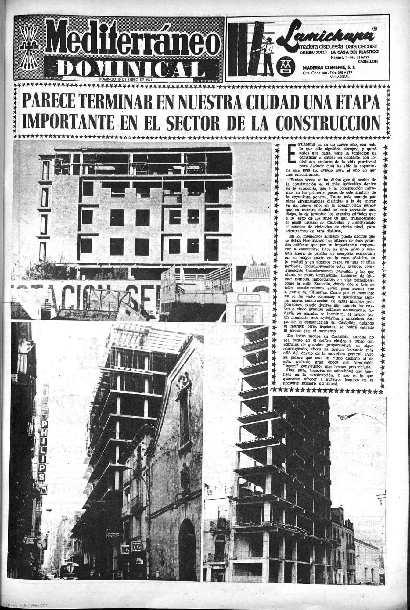 En 1960, Castellón ciudad cuenta con 61.400 habitantes. Veintiún años después, en 1980, ya son 124.000, más del doble, atenuándose después su ritmo de crecimiento hasta la entrada del siglo XIX, en que volverá a diapararse. Sin embargo, en 1971, con ocasión de unas páginas especiales dedicadas al sector de la construcción, Mediterraneo asegura que «parece terminar» en la ciudad «una etapa importante» en su desarrollo urbanístico.