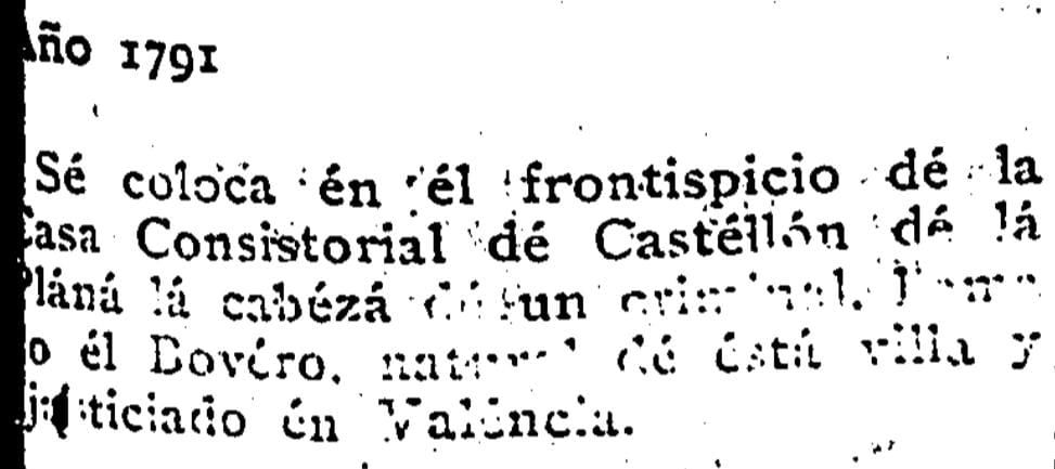 Entre las efemérides que publica el viernes 13 de febrero de 1931, Diario de la Mañana incluye una noticia del año 1791 (solo dos después de la Toma de la Bastilla que da paso a la Revolución Francesa) según la cual «se coloca en el frontispicio de la Casa Consistorial de Castellón de la Plana la cabeza de un criminal, llamado el Bovero, natural de esta villa y ajusticiado en Valencia.